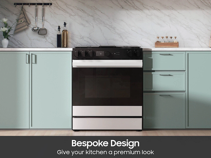 Samsung – Bespoke 6.0 Cu. Ft. Slide-In Gas Range with Smart Oven Camera – White Glass Model: NSG6DB870012AA