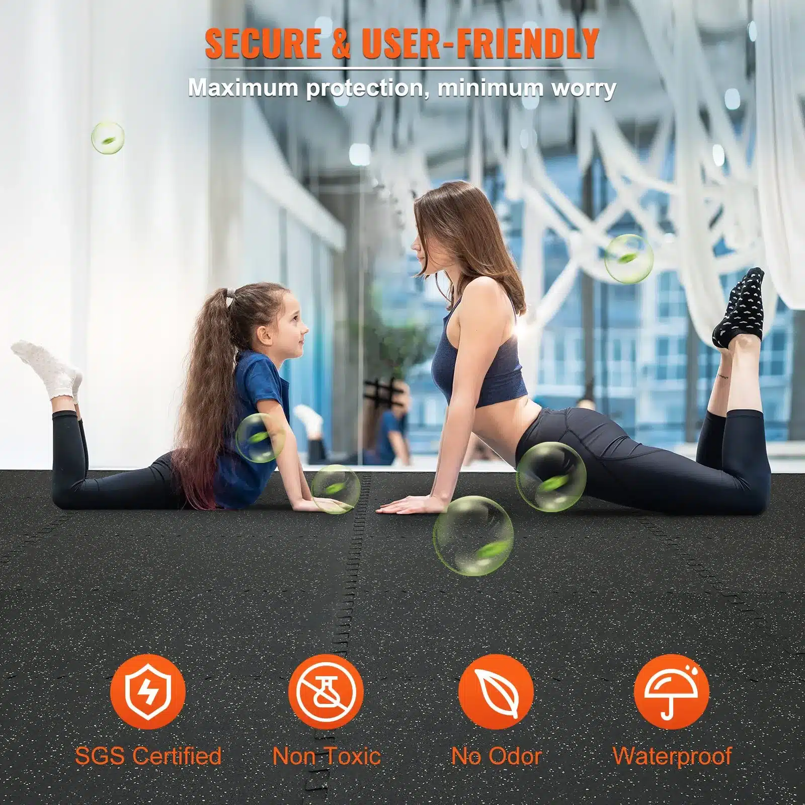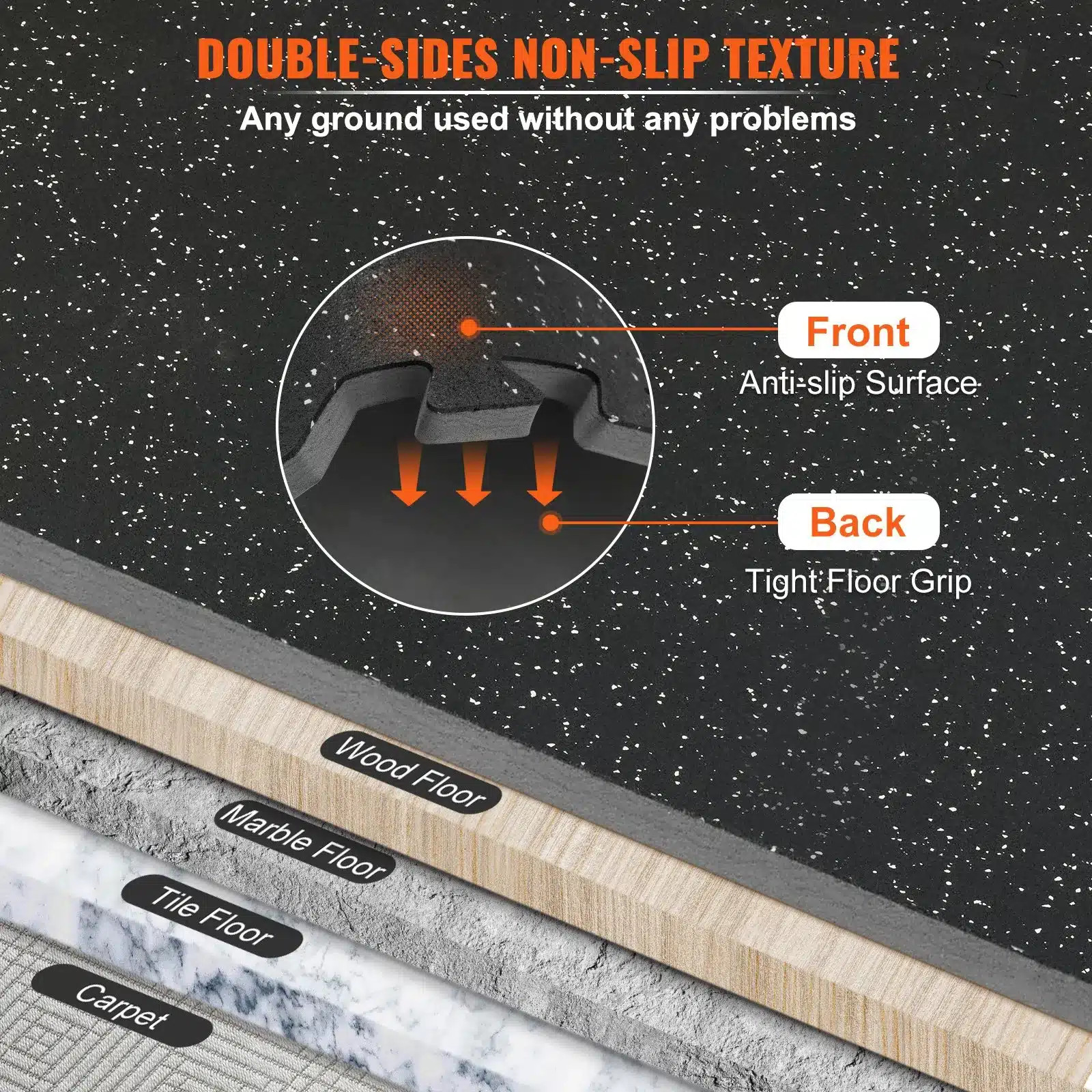 Shock-Absorbing and Non-Slip: The mat is 0.56 in thick, featuring a top layer made of high-quality rubber, ensuring excellent slip resistance. This rubber interlocking floor tiles design effectively absorbs shock and rebounds while providing enough grip for safe workouts.