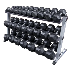 Body-Solid Rubber Hex Dumbbell 1kg – 30kg Package with Rack & Mat